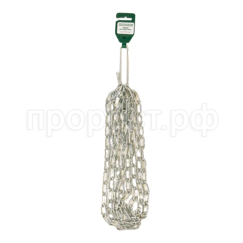 Стальная сварная будочная цепь с длинным звеном, вертлюгом и карабином. Производится из углеродистой стали и обрабатывается цинком гальваническим методом. Диаметр сечения звена 3,5мм.